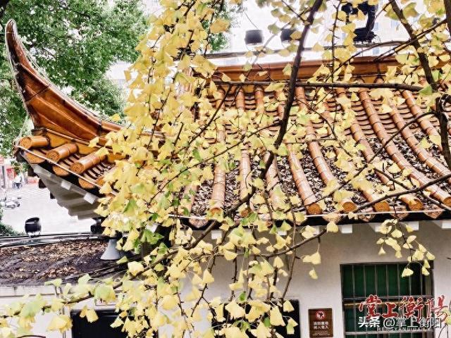 ▲金黄的银杏叶与仿古建筑相互映衬。